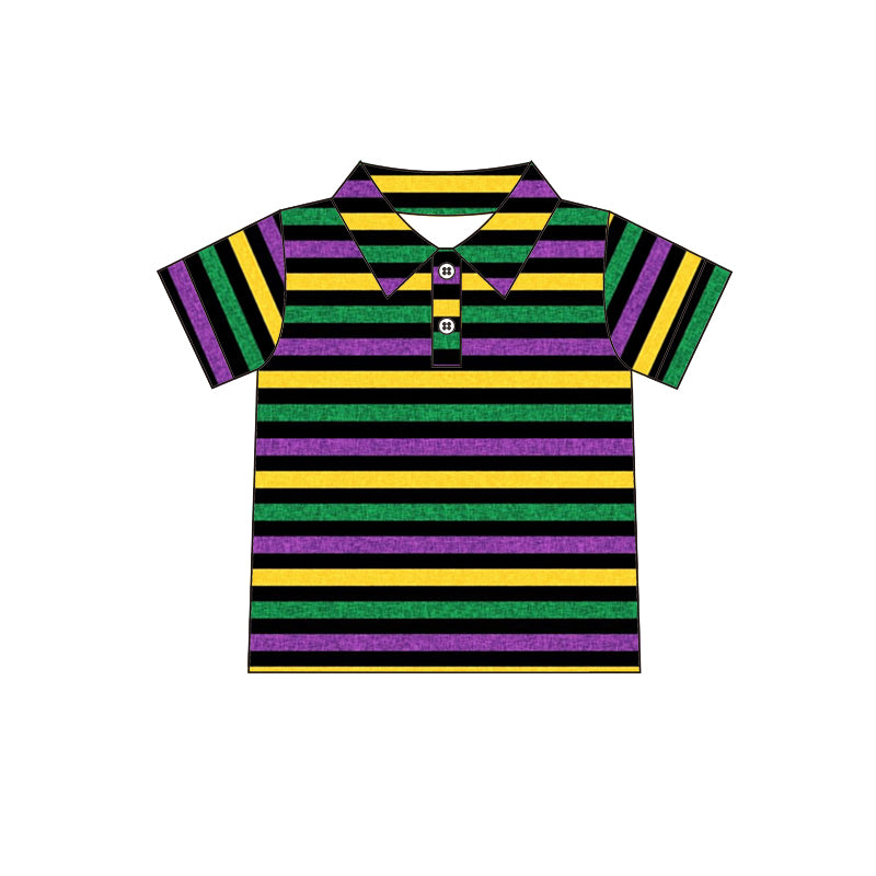 (Custom Design MOQ 5) NO.16 Stripes Mardi Gras Boys Polo Tee Shirts Top