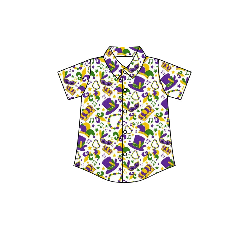 (Custom Design MOQ 5) NO.5 Purple Hat Mardi Gras Boys Button Tee Shirts Top