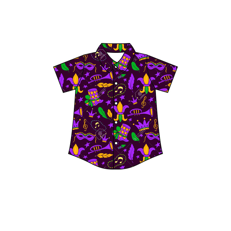 (Custom Design MOQ 5) NO.9 Purple Star Mardi Gras Boys Button Tee Shirts Top