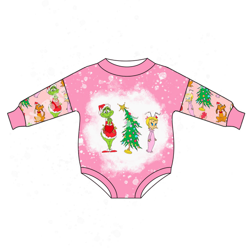 (Custom Design MOQ 5) Pink Christmas forg baby girls romper