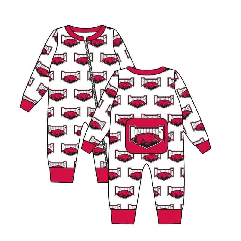 (Custom Design MOQ 5) Red football team baby boys zipper romper