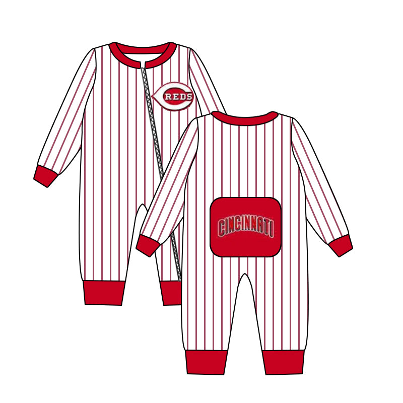 (Custom Design MOQ 5) Red Sports Team's R Print Infant Zipper Romper