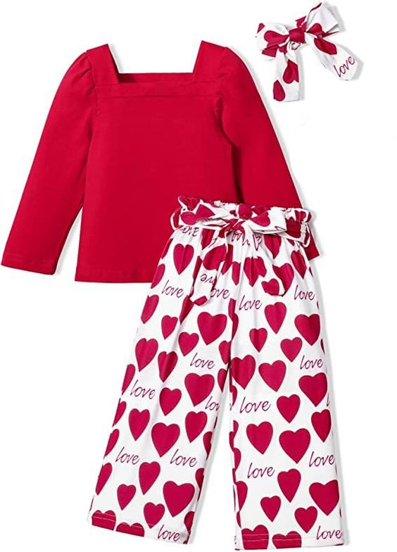 (Custom Design MOQ 5) Red Top Heart Pants Girls 3 Pieces Valentine's Clothes set