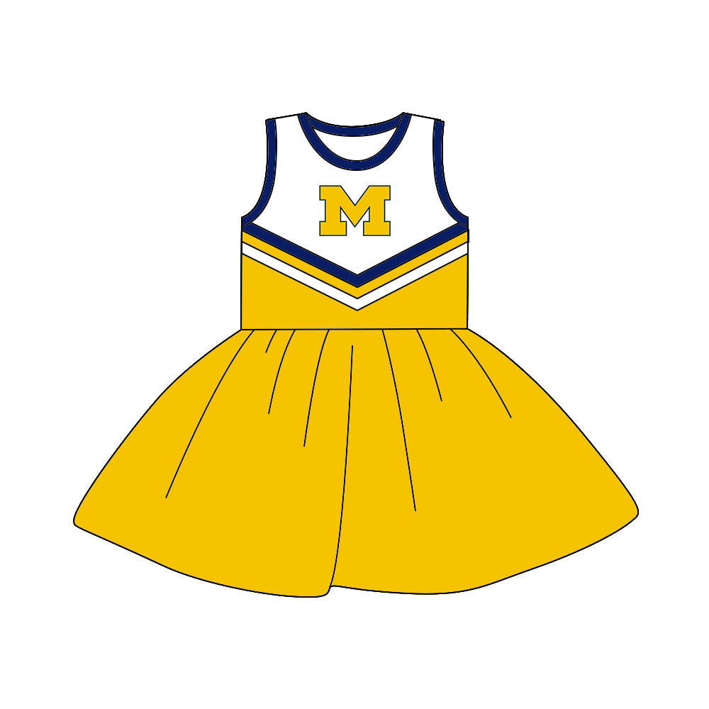 (Custom Design MOQ 5) Sleeveless football team's NO. 1 yellow dress