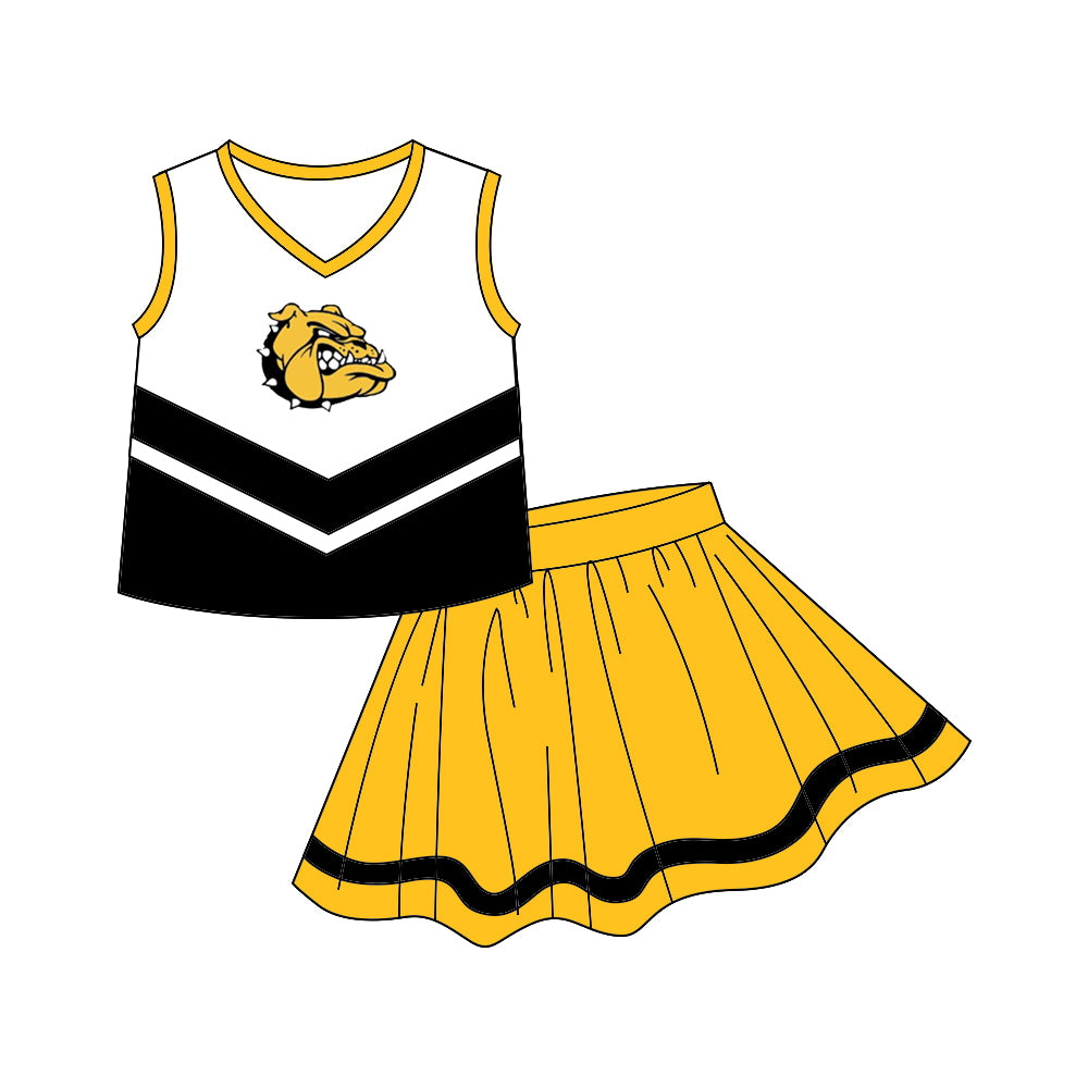 (Custom Design MOQ 5) Sleeveless top football team's NO.2 black & yellow skirts girls clothes set