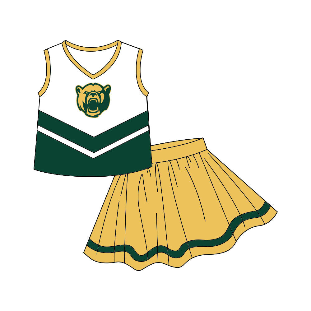 (Custom Design MOQ 5) Sleeveless top football team's NO.6 green & yellow skirts girls clothes set