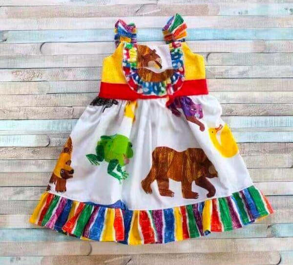 (Custom Design MOQ 5) What can you see animals colorful stripes print knee length dress