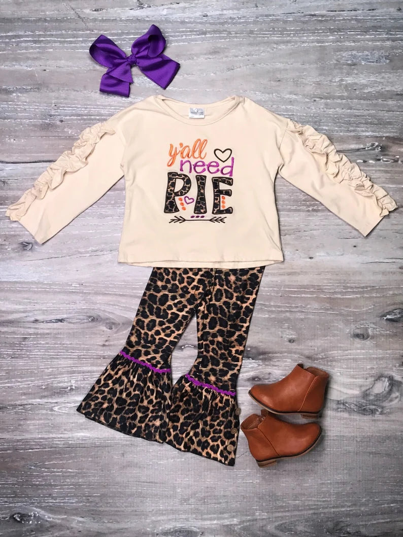 (Custom Design MOQ 5) Y'all Need Pie Top Leopard Bell Pants Girls Fall clothes set