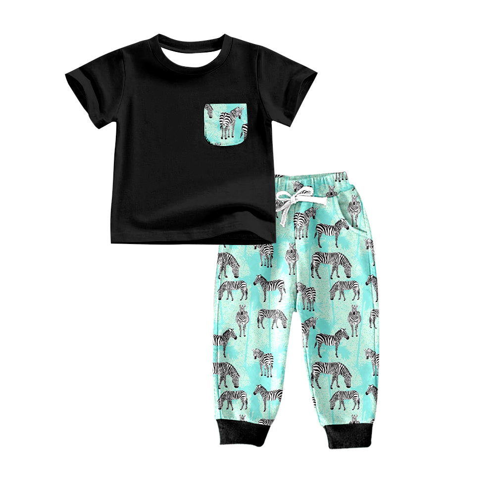 (Custom Design MOQ 5) Zebra Print Black Top Boys Clothes Set