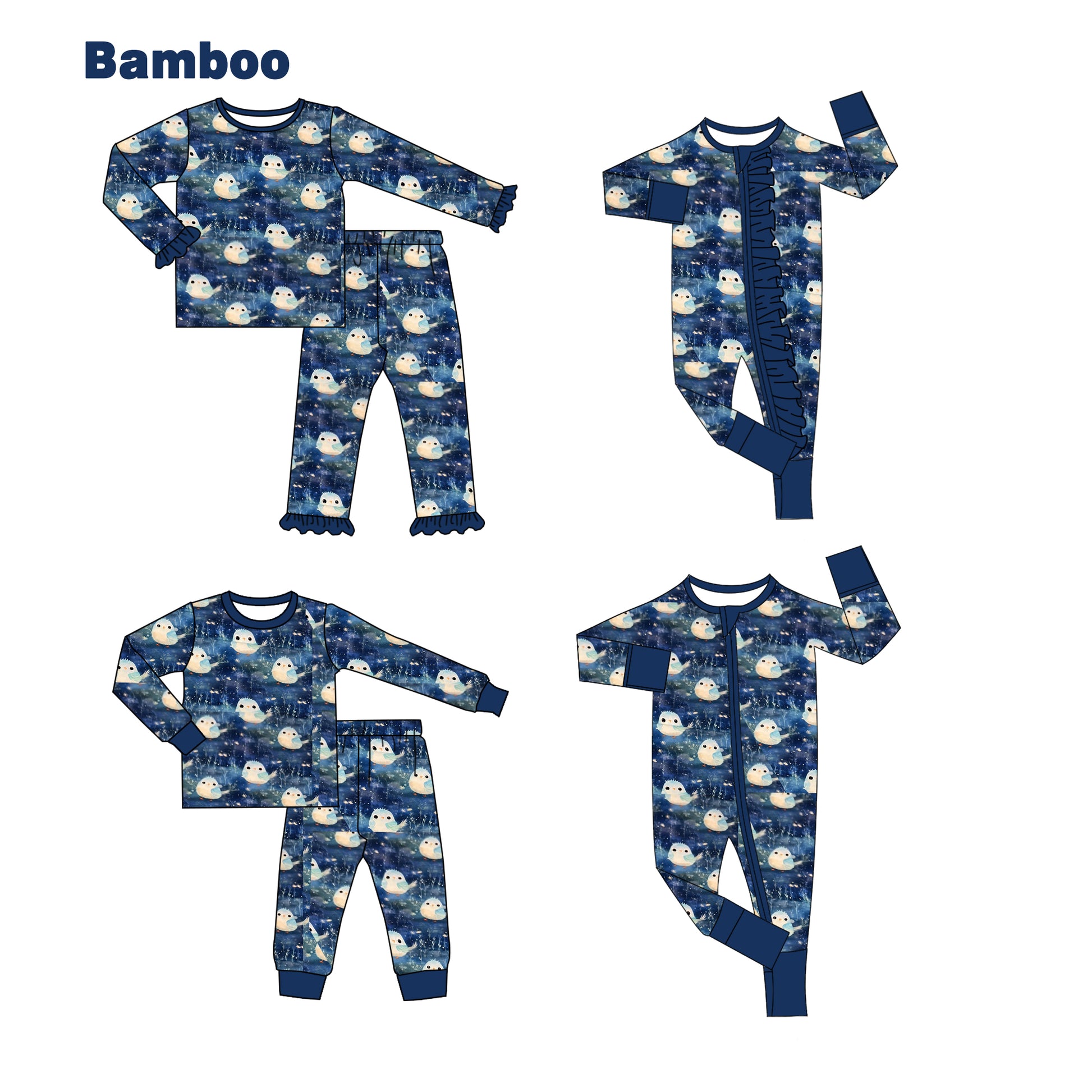 (Custom Design Preorder MOQ 20 Each Design) Bird Print Kids Pajamas Matching Bamboo Clothes Sibling Wear