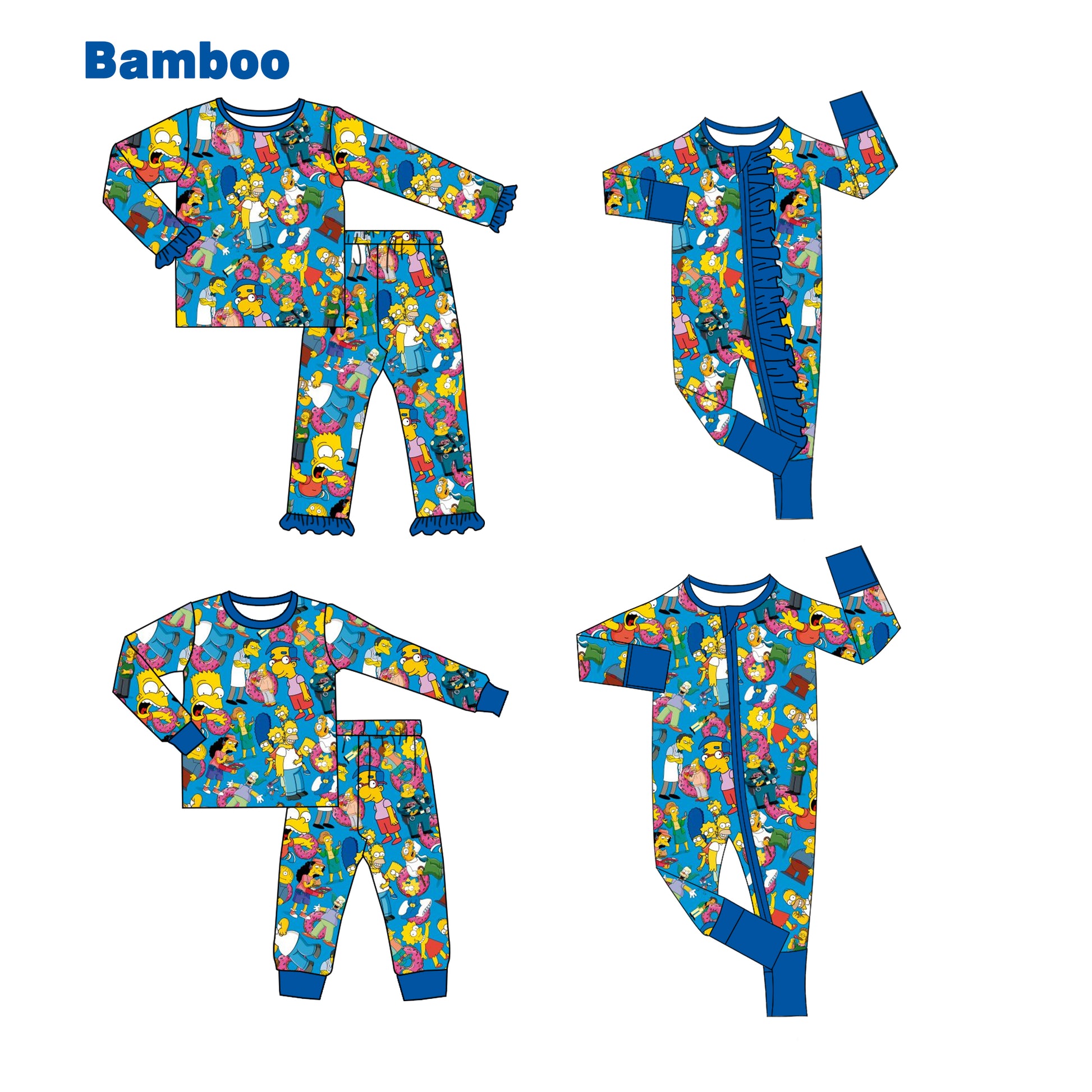 (Custom Design Preorder MOQ 20 Each Design) Cartoon Characters Print Kids Pajamas Matching Bamboo Clothes Sibling Wear