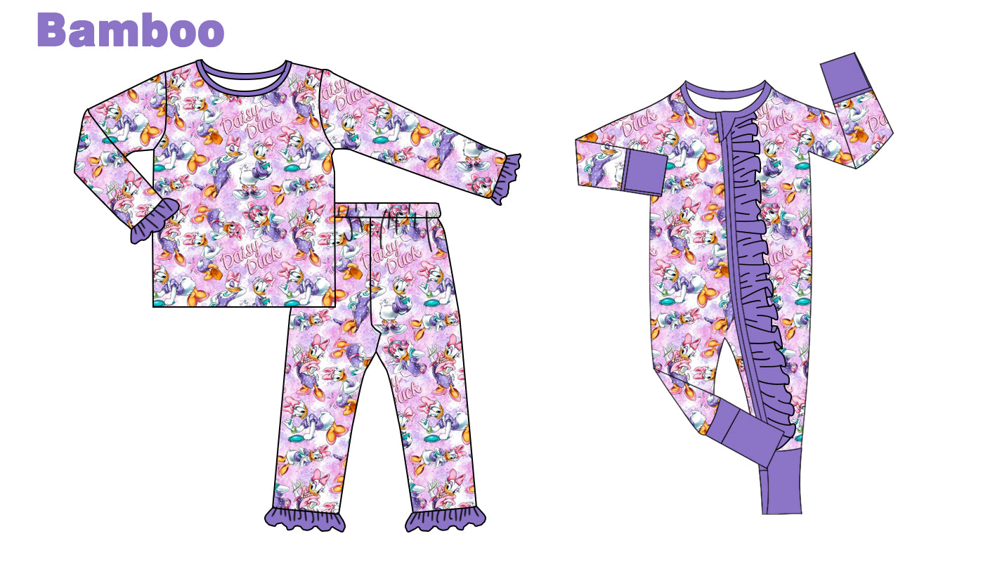 (Custom Design Preorder MOQ 20 Each Design) Cartoon Duck Print Girls Pajamas Matching Bamboo Clothes Sisters Wear