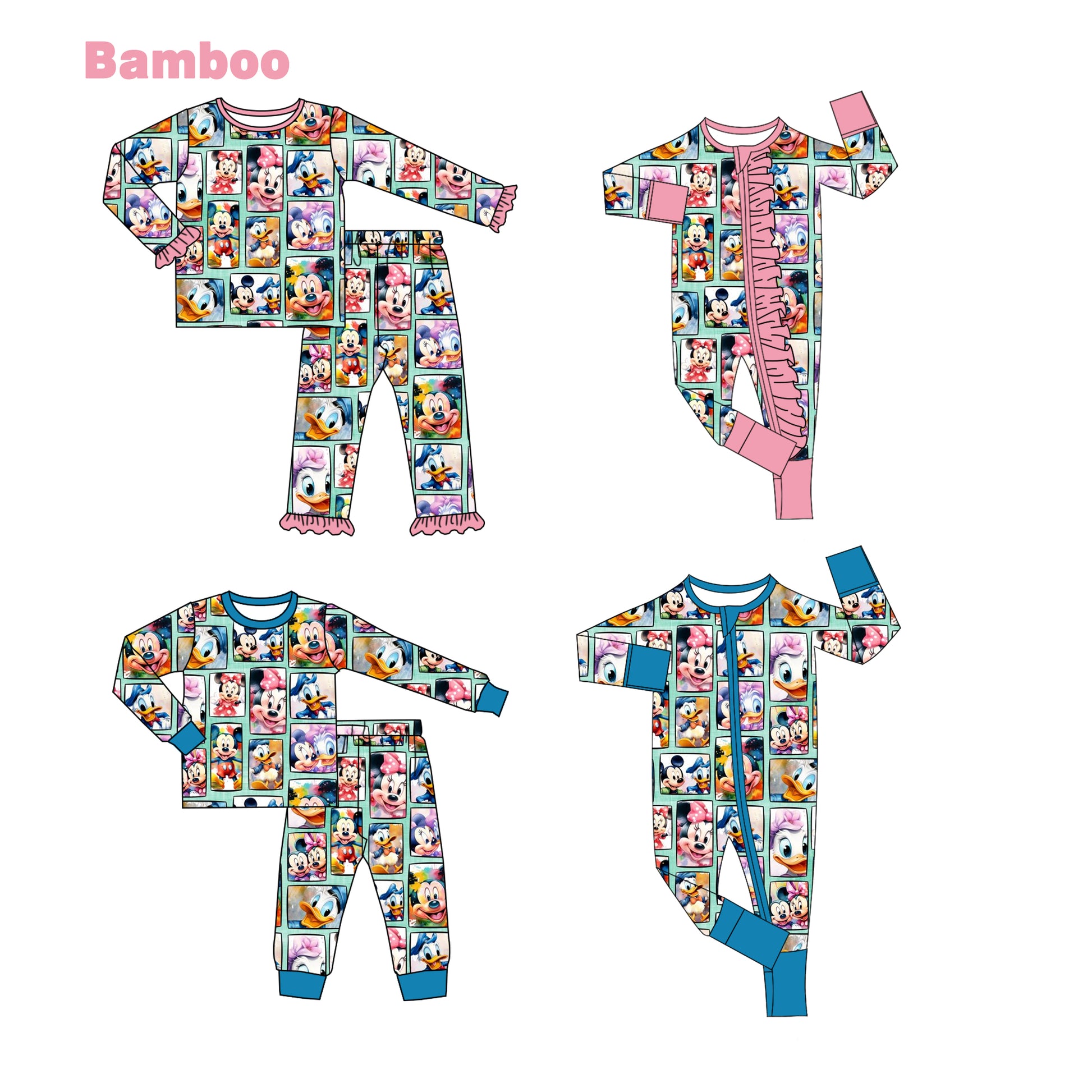 (Custom Design Preorder MOQ 20 Each Design) Cartoon Mouse Print Kids Pajamas Matching Bamboo Clothes Sibling Wear