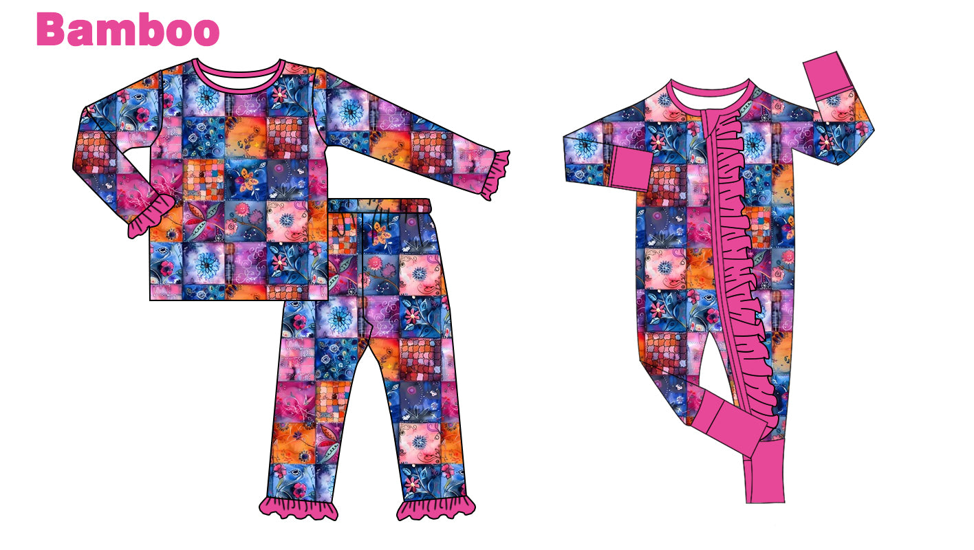 (Custom Design Preorder MOQ 20 Each Design) Flowers Plaid Print Girls Fall Pajamas Matching Bamboo Clothes Sisters Wear