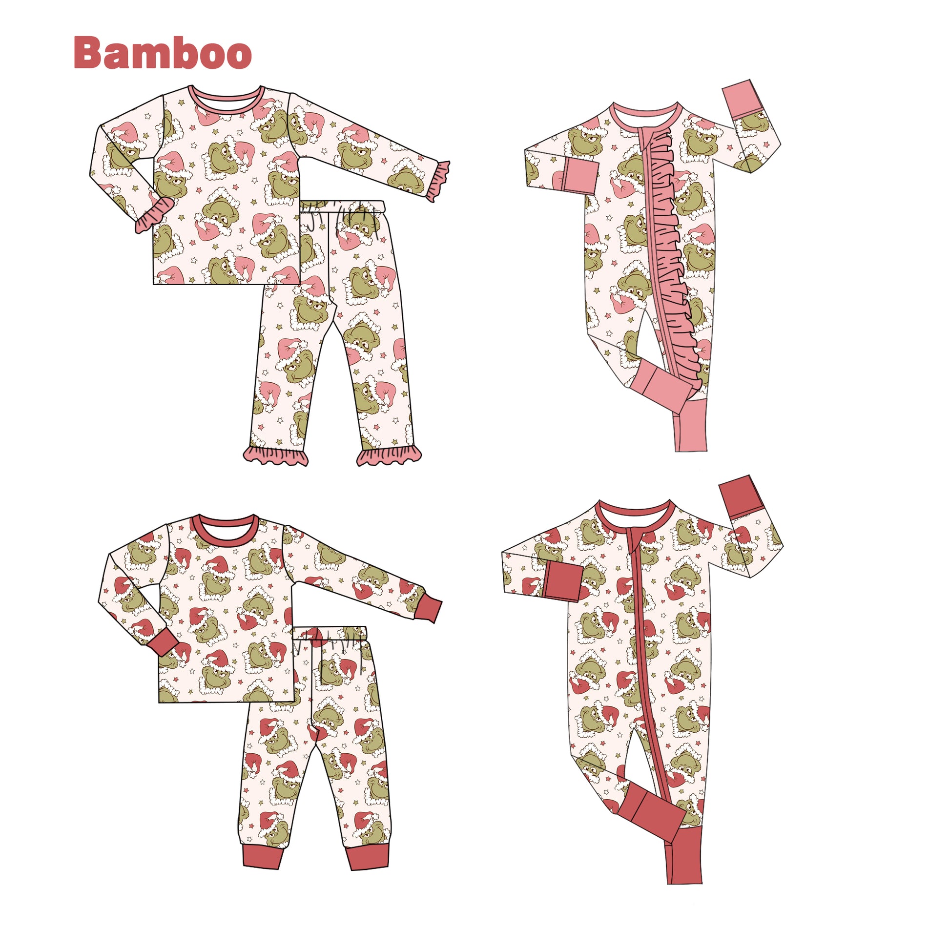 (Custom Design Preorder MOQ 20 Each Design) Green Frog Print Kids Christmas Pajamas Matching Bamboo Clothes Sibling Wear