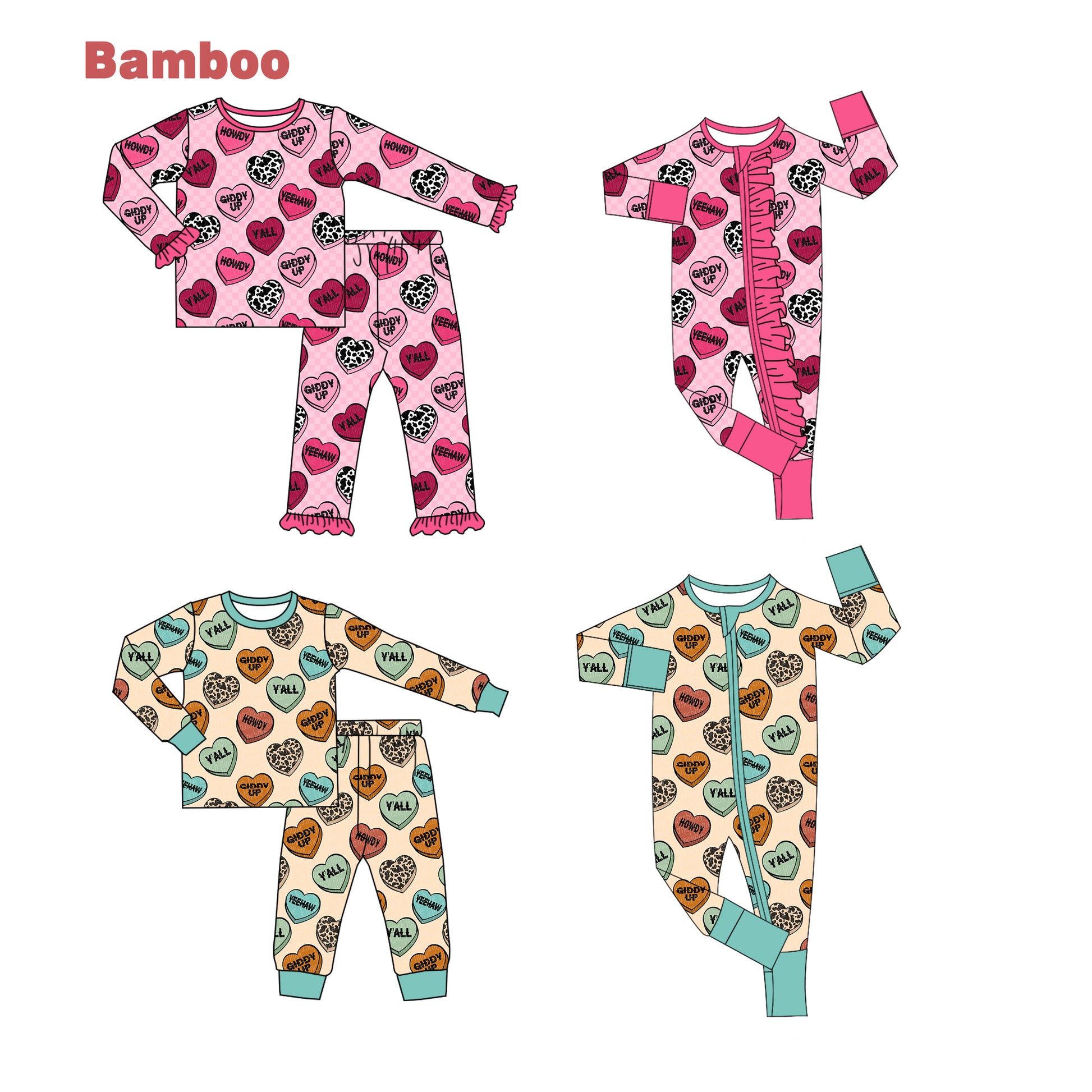 (Custom Design Preorder MOQ 20 Each Design) Heart Print Kids Valentine's Day Pajamas Matching Bamboo Clothes Sibling Wear