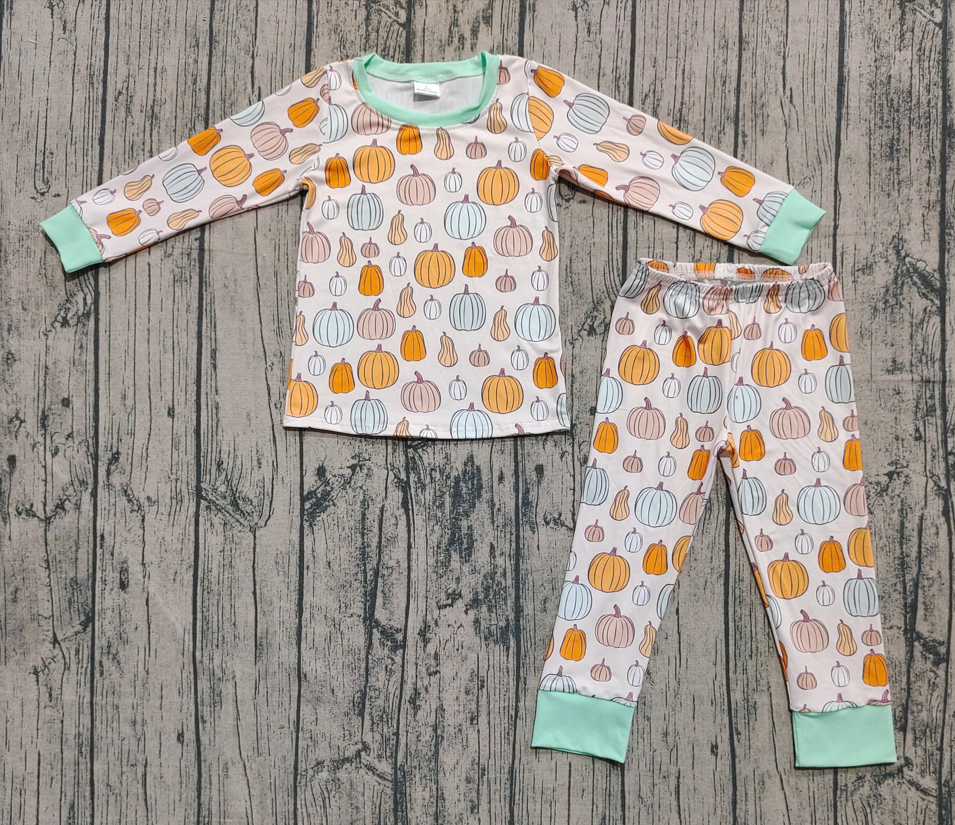 (Custom Design Preorder MOQ 20) Pumpkin Print Boys Fall Bamboo Pajamas Clothes Set