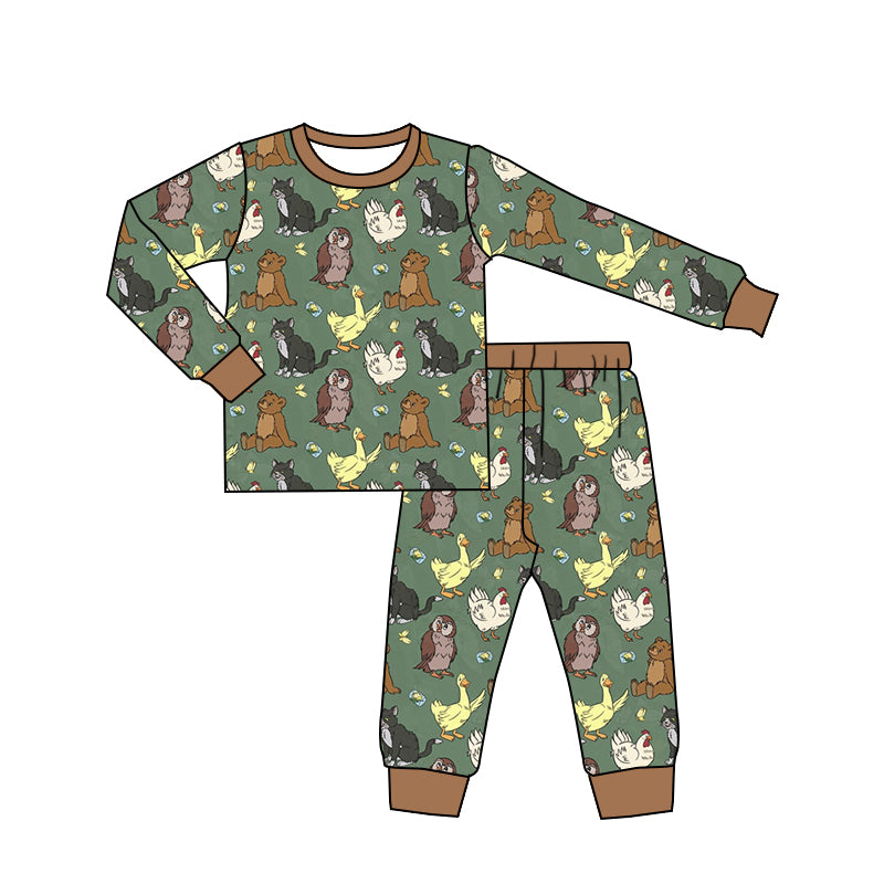 (Custom Design Preorder MOQ 5) Animals Print Kids Bamboo Pajamas Clothes Set