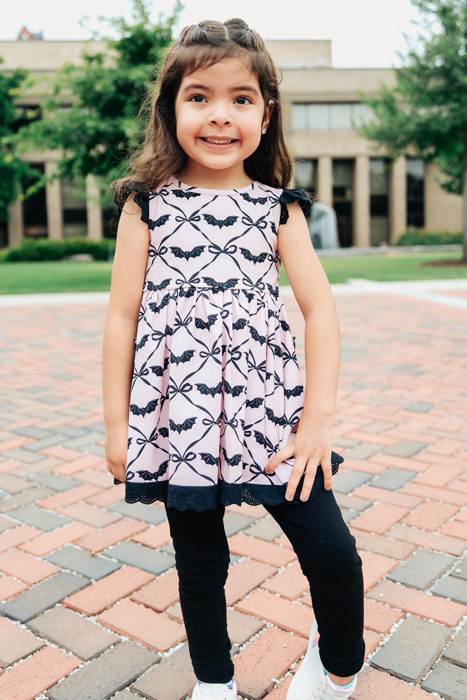 (Custom Design Preorder MOQ 5) Bat Bows Tunic Top Legging Pants Girls Halloween Clothes Set