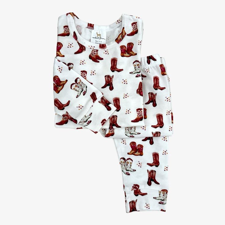 (Custom Design Preorder MOQ 20) Boots Print Kids Fall Pajamas Bamboo Clothes Set