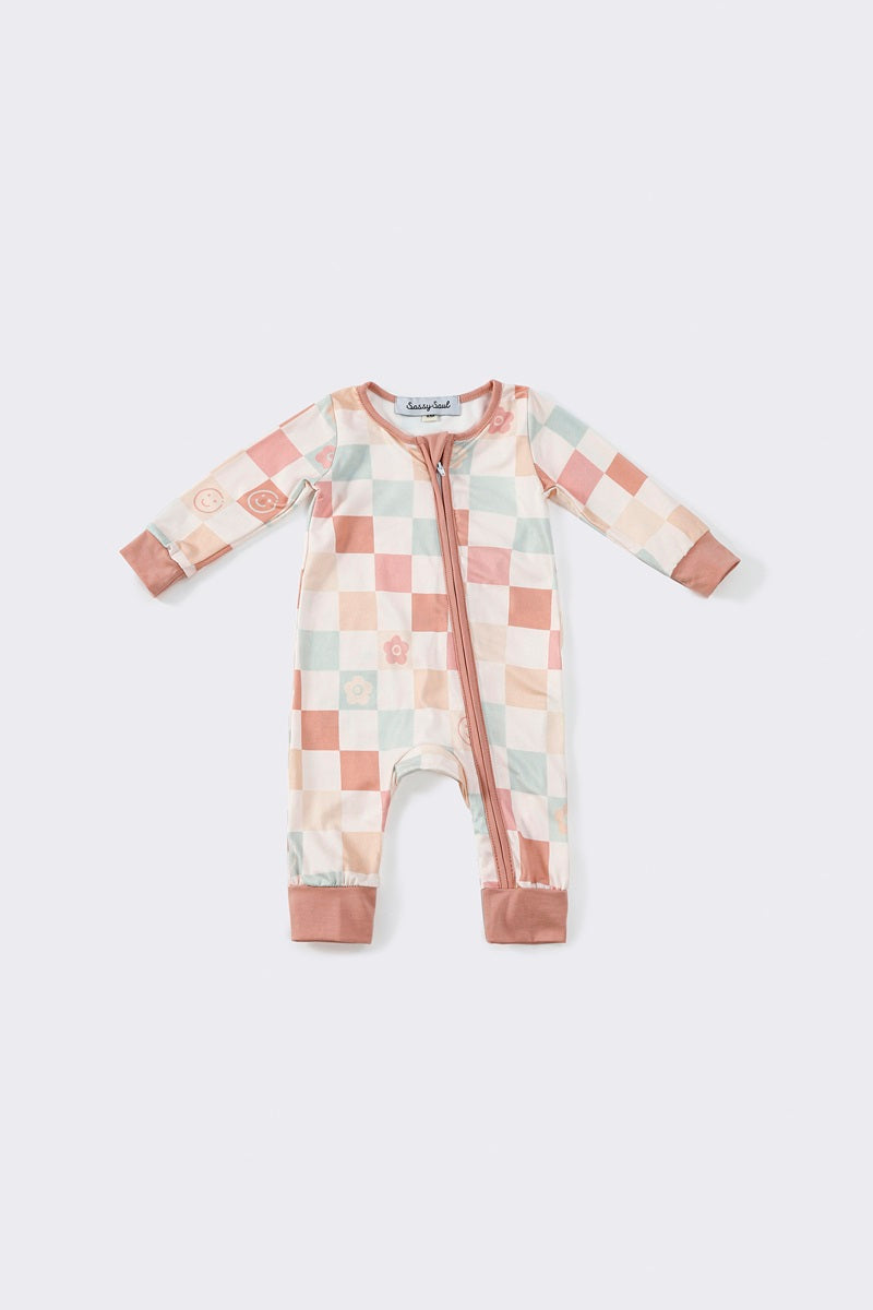 (Custom Design Preorder MOQ 20) Brown Plaid Print Baby Girls Fall Bamboo Sleeper Zipper Romper