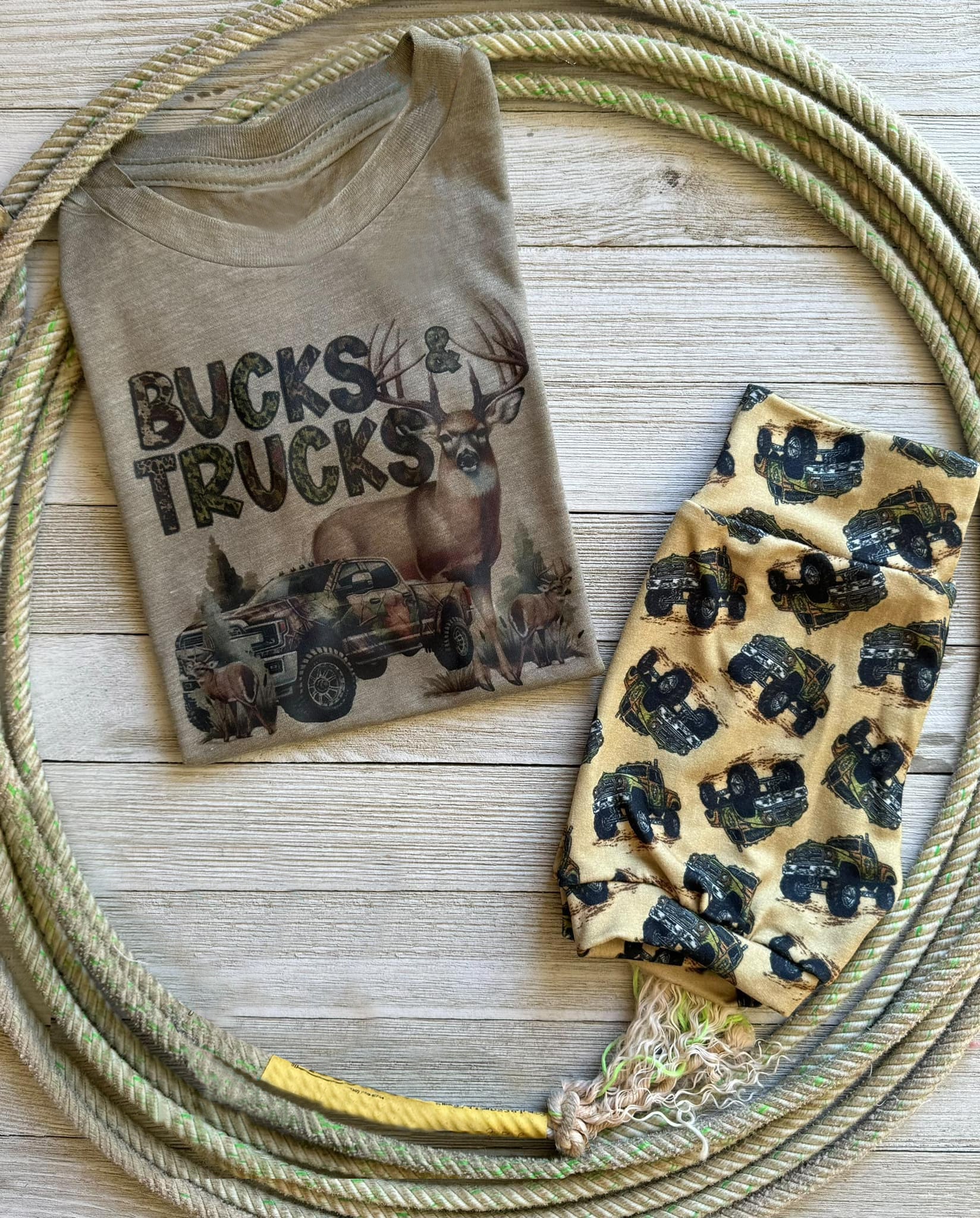 (Custom Design Preorder MOQ 5) Bucks Trucks Print Boys Summer Clothes Set