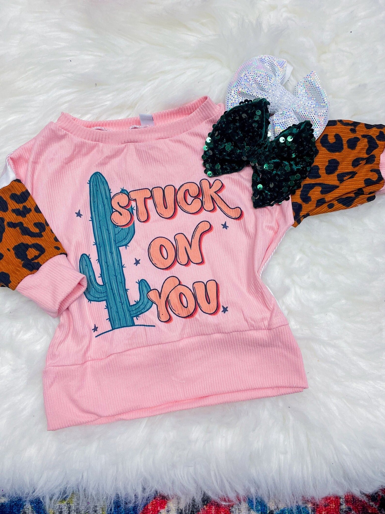 (Custom Design Preorder MOQ 5) Cactus Stuck on You Print Girls Tee Shirts Top