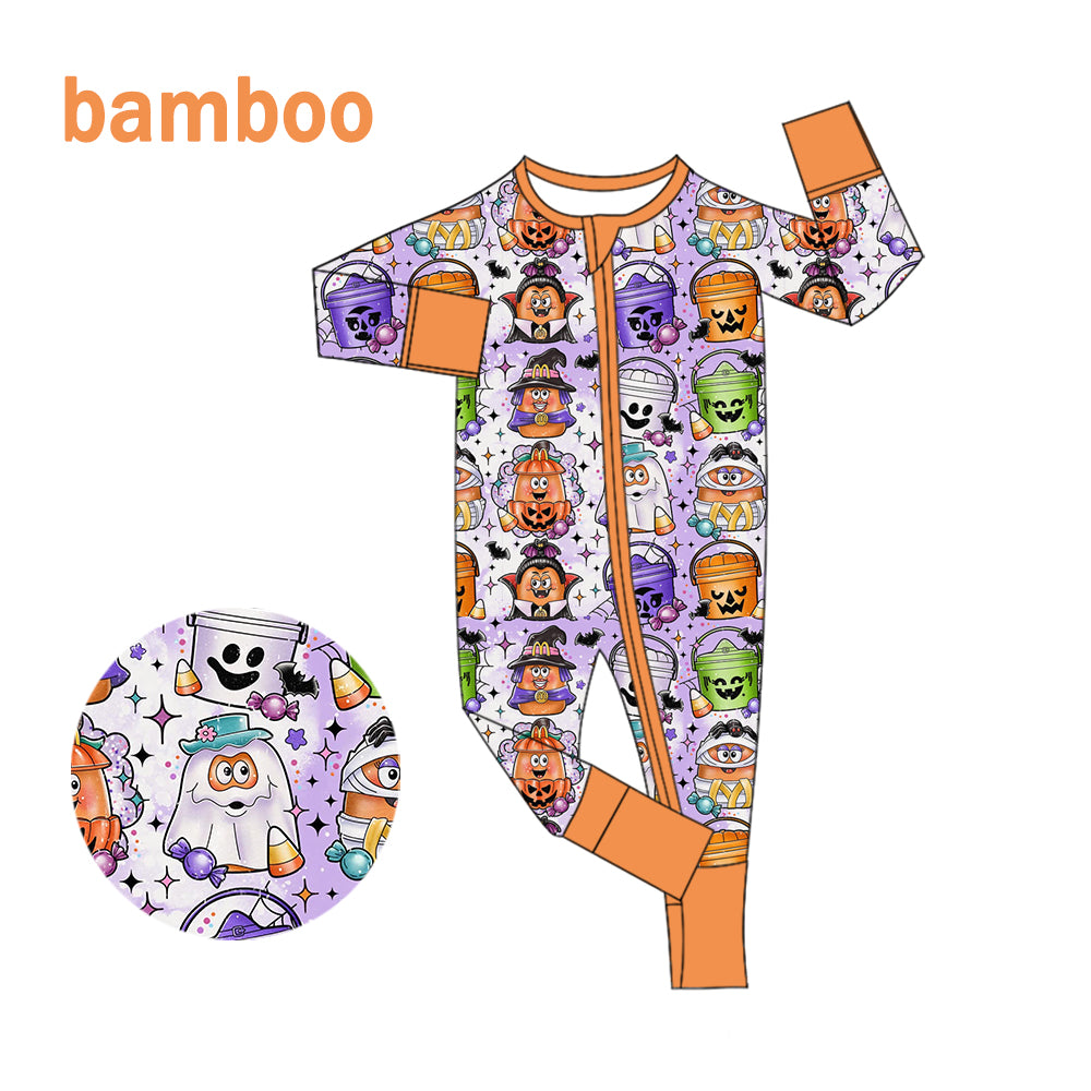(Custom Design Preorder MOQ 20) Candy Print Baby Boys Halloween Long Sleeve Bamboo Sleeper Zipper Romper