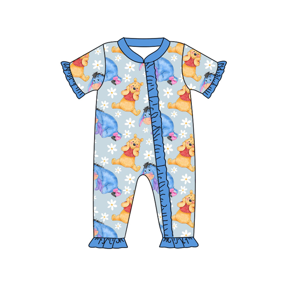 (Custom Design Preorder MOQ 20) Cartoon Animals Flowers Print Baby Girls Bamboo Sleeper Zipper Romper