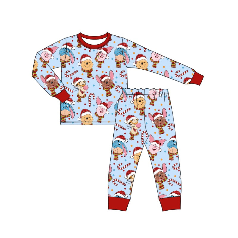 (Custom Design Preorder MOQ 5) Cartoon Bear Friends Print Boys Christmas Bamboo Pajamas Clothes Set
