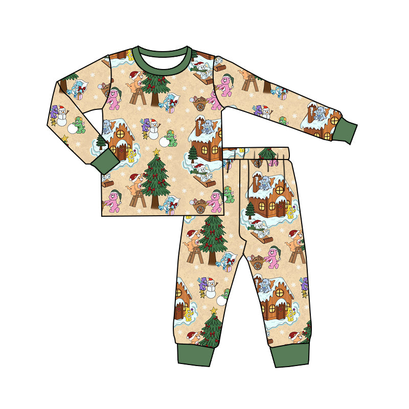 (Custom Design Preorder MOQ 20) Cartoon Bear Print Kids Christmas Pajamas Bamboo Clothes Set