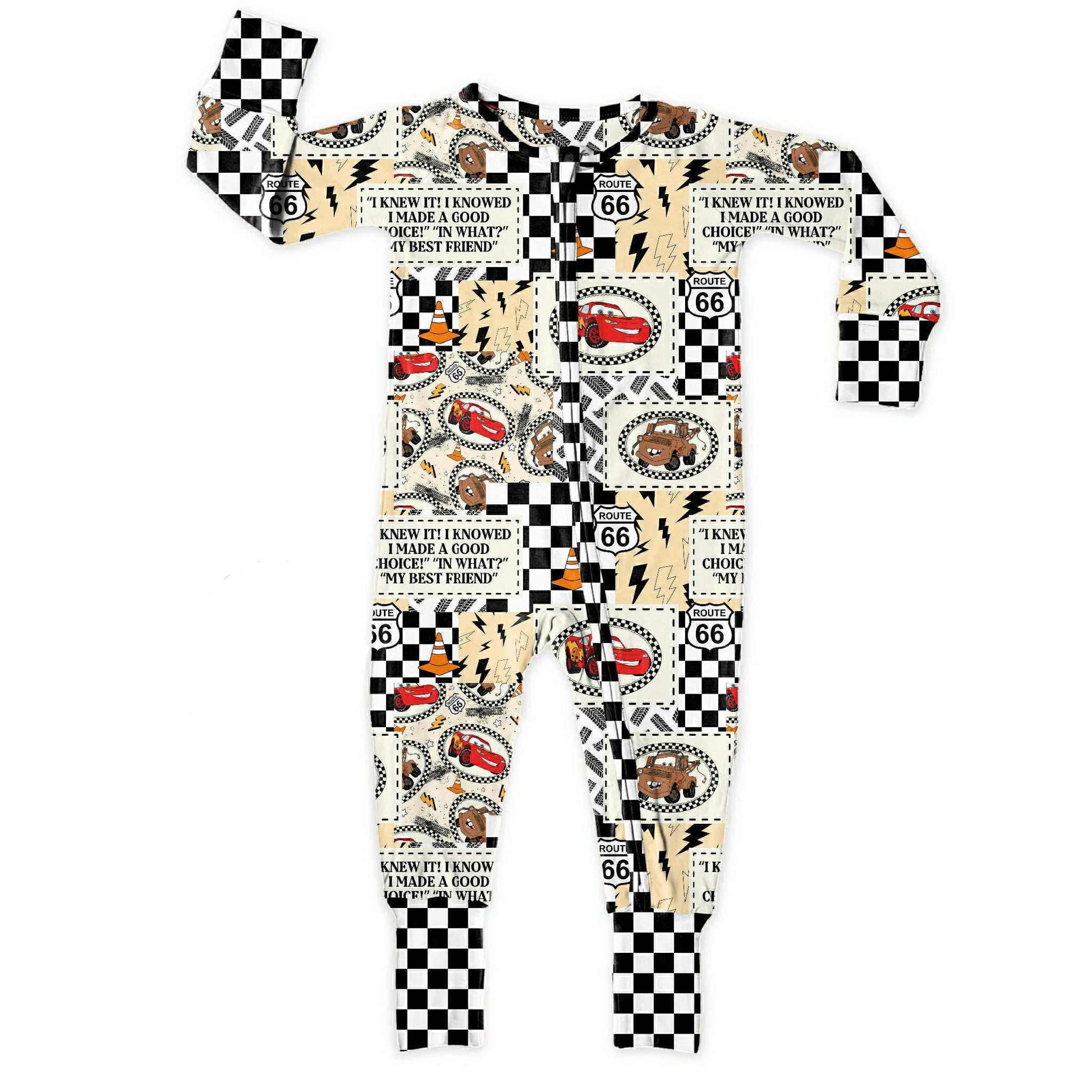 (Custom Design Preorder MOQ 5) Cartoon Cars Print Baby Fall Sleeper Zipper Romper