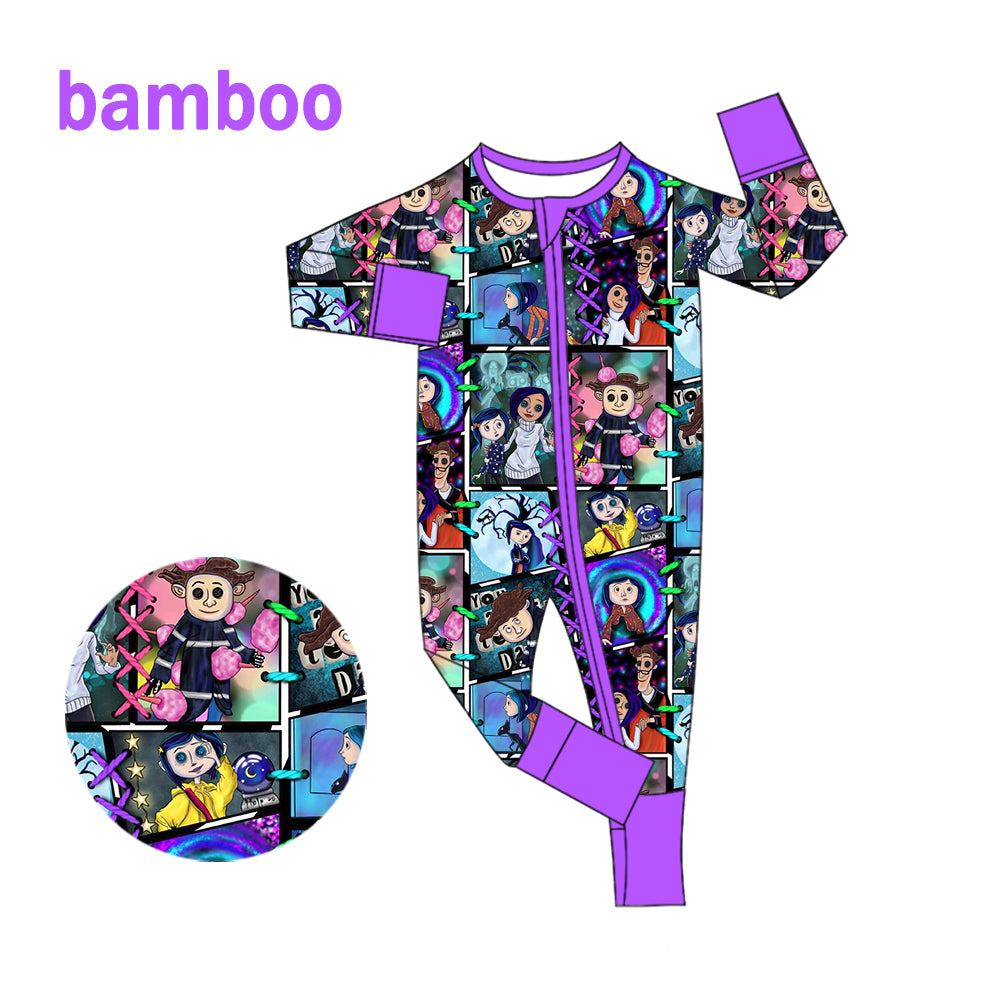 (Custom Design Preorder MOQ 20) Cartoon Character Wednesday Print Baby Halloween Long Sleeve Bamboo Sleeper Zipper Romper