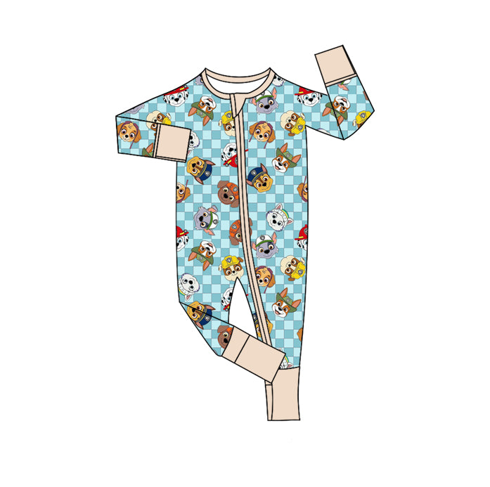 (Custom Design Preorder MOQ 20) Cartoon Dog Print Baby Boys Bamboo Sleeper Zipper Romper