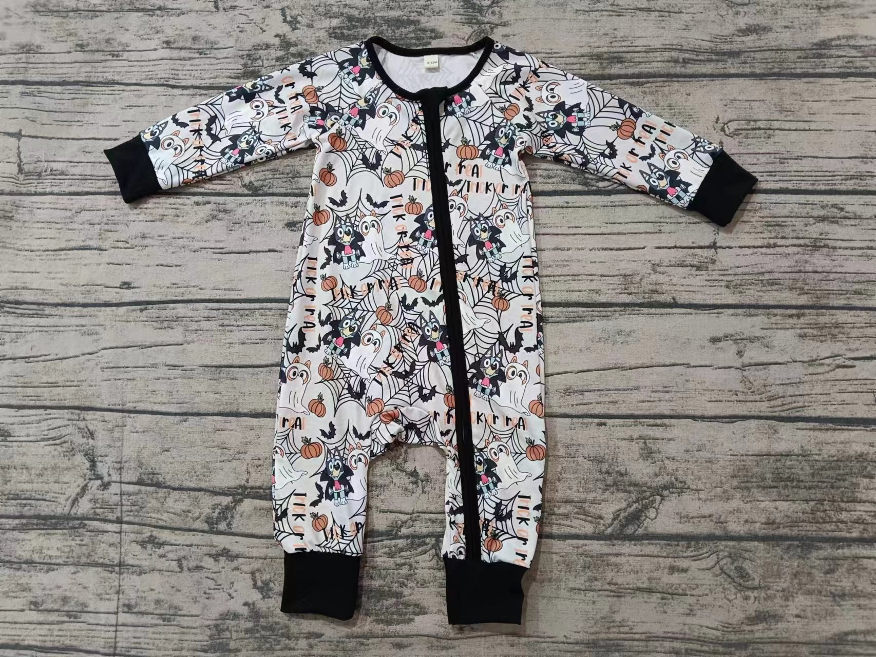 (Custom Design Preorder MOQ 20) Cartoon Dog Pumpkin Print Baby Halloween Bamboo Sleeper Zipper Romper