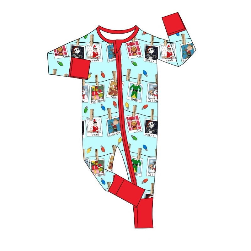 (Custom Design Preorder MOQ 20) Cartoon Figure Print Baby Christmas Bamboo Sleeper Zipper Romper