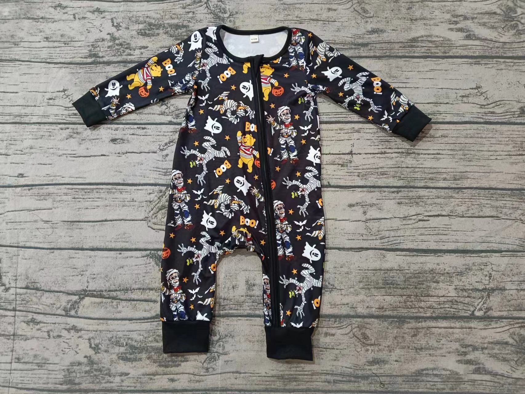 (Custom Design Preorder MOQ 20) Cartoon Figure BOO Print Baby Halloween Bamboo Sleeper Zipper Romper