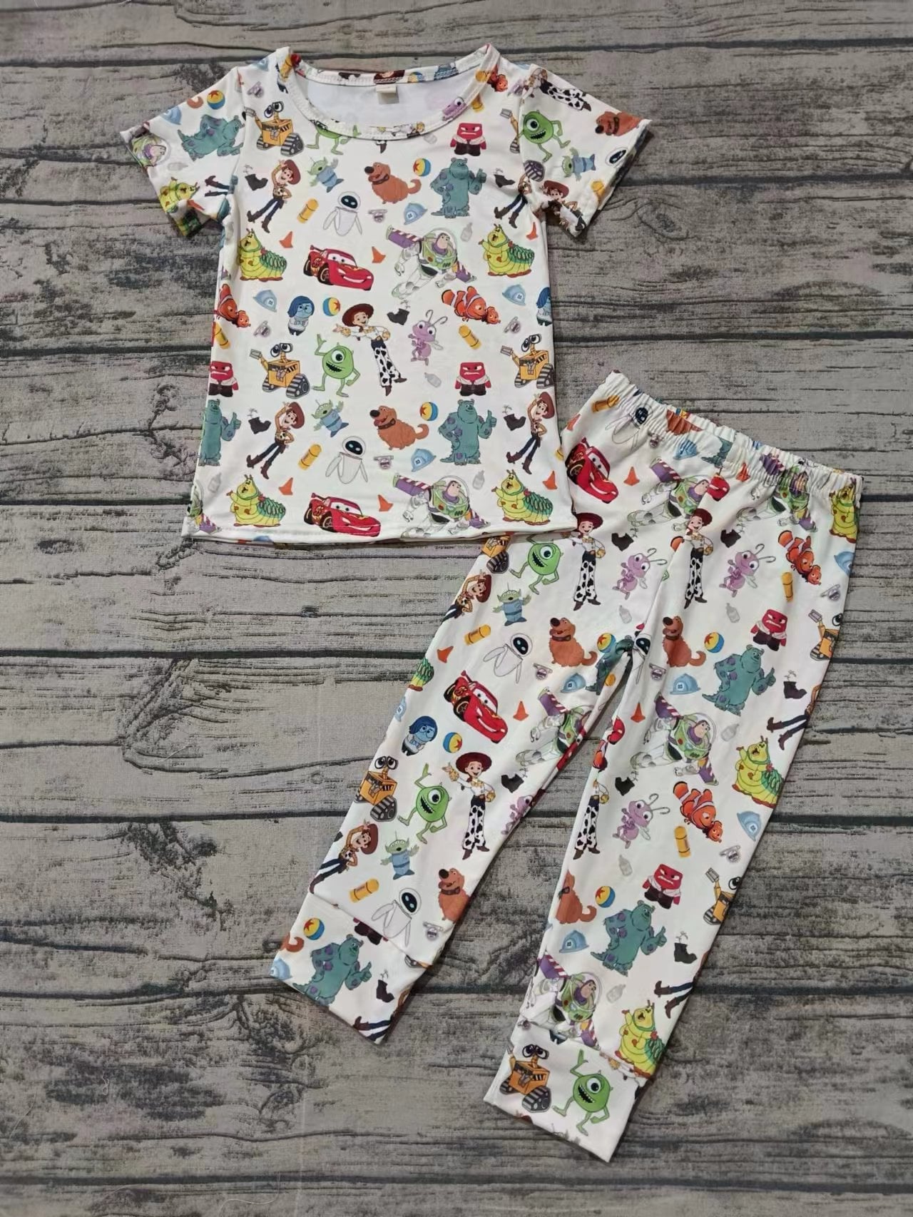 (Custom Design Preorder MOQ 5) Cartoon Figure Print Kids Pajamas Bamboo Clothes Set