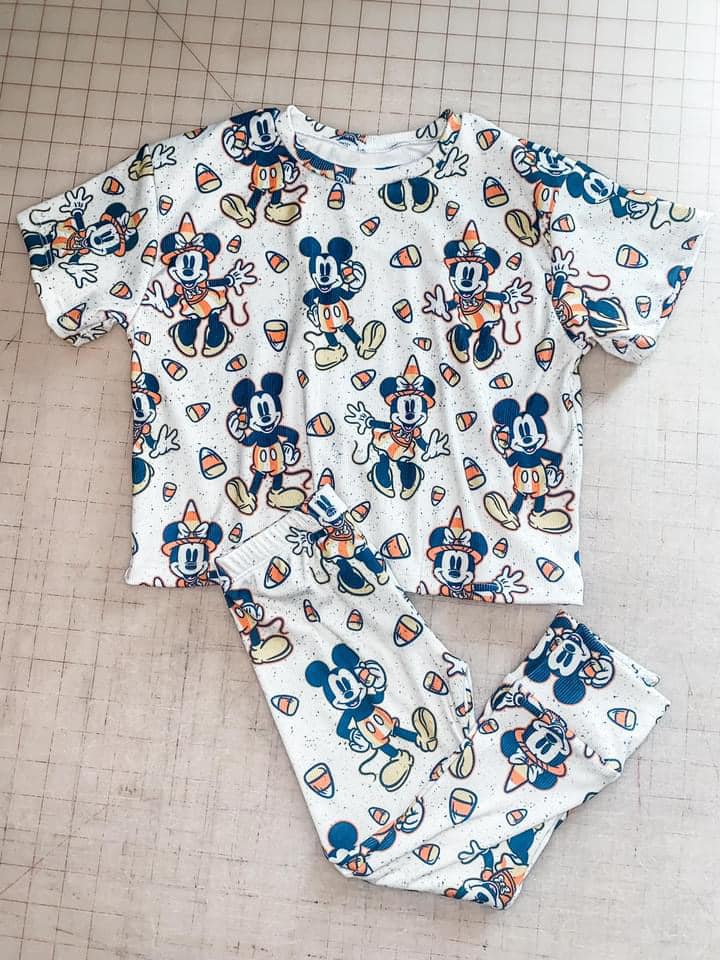 (Custom Design Preorder MOQ 20) Cartoon Mouse Candy Print Kids Halloween Bamboo Pajamas Clothes Set