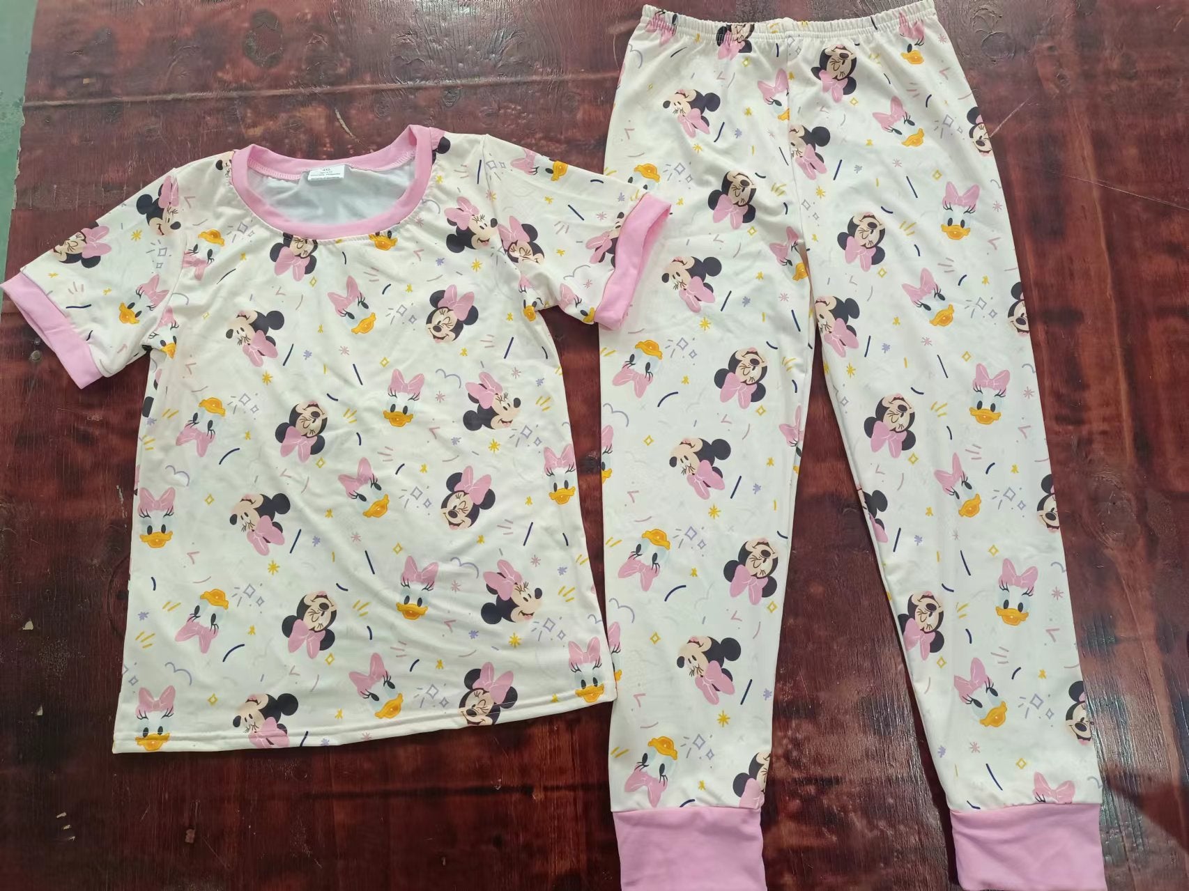 (Custom Design Preorder MOQ 5) Cartoon Mouse Duck Print Girls Pajamas Clothes Set