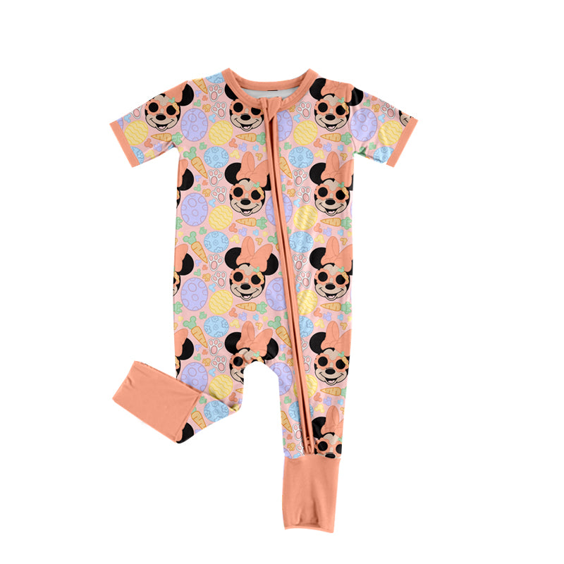 (Custom Design Preorder MOQ 20) Cartoon Mouse Eggs Print Baby Girls Easter Bamboo Sleeper Zipper Romper