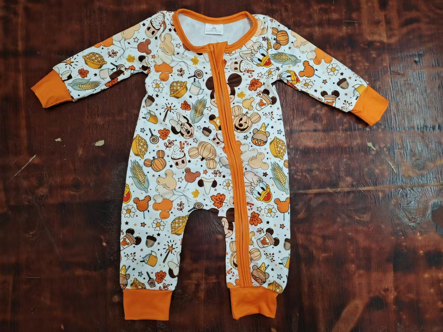 (Custom Design Preorder MOQ 20) Cartoon Mouse Pumpkin Print Baby Fall Bamboo Sleeper Zipper Romper