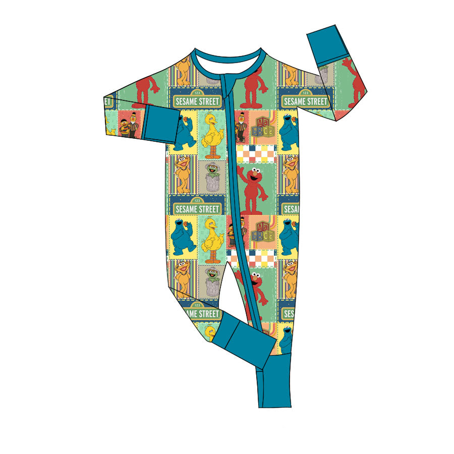 (Custom Design Preorder MOQ 20) Catoon Street Blue Print Baby Bamboo Fall Sleeper Zipper Romper