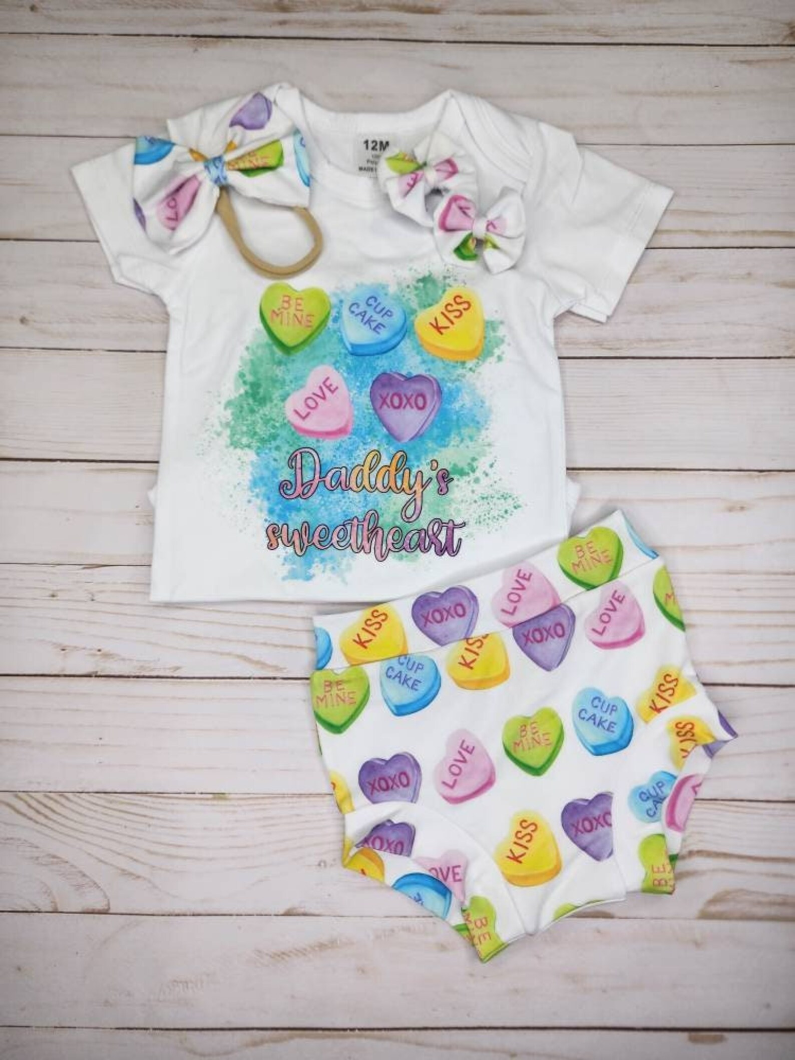 (Custom Design Preorder MOQ 5) Colorful Heart Print Baby Girls Valentine's Bummie Set