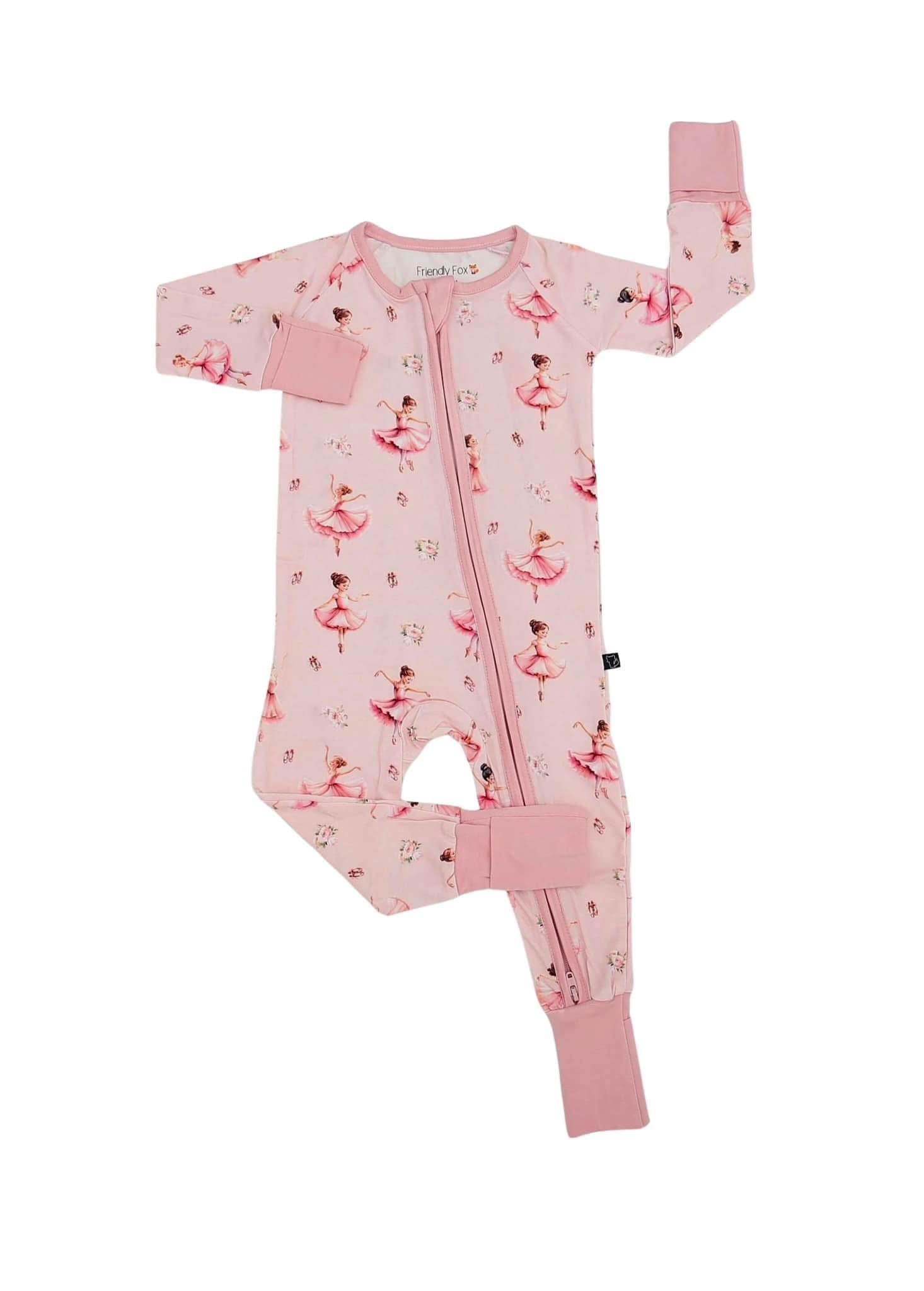 (Custom Design Preorder MOQ 20) Dancing Flowers Pink Print Baby Girls Bamboo Sleeper Zipper Romper