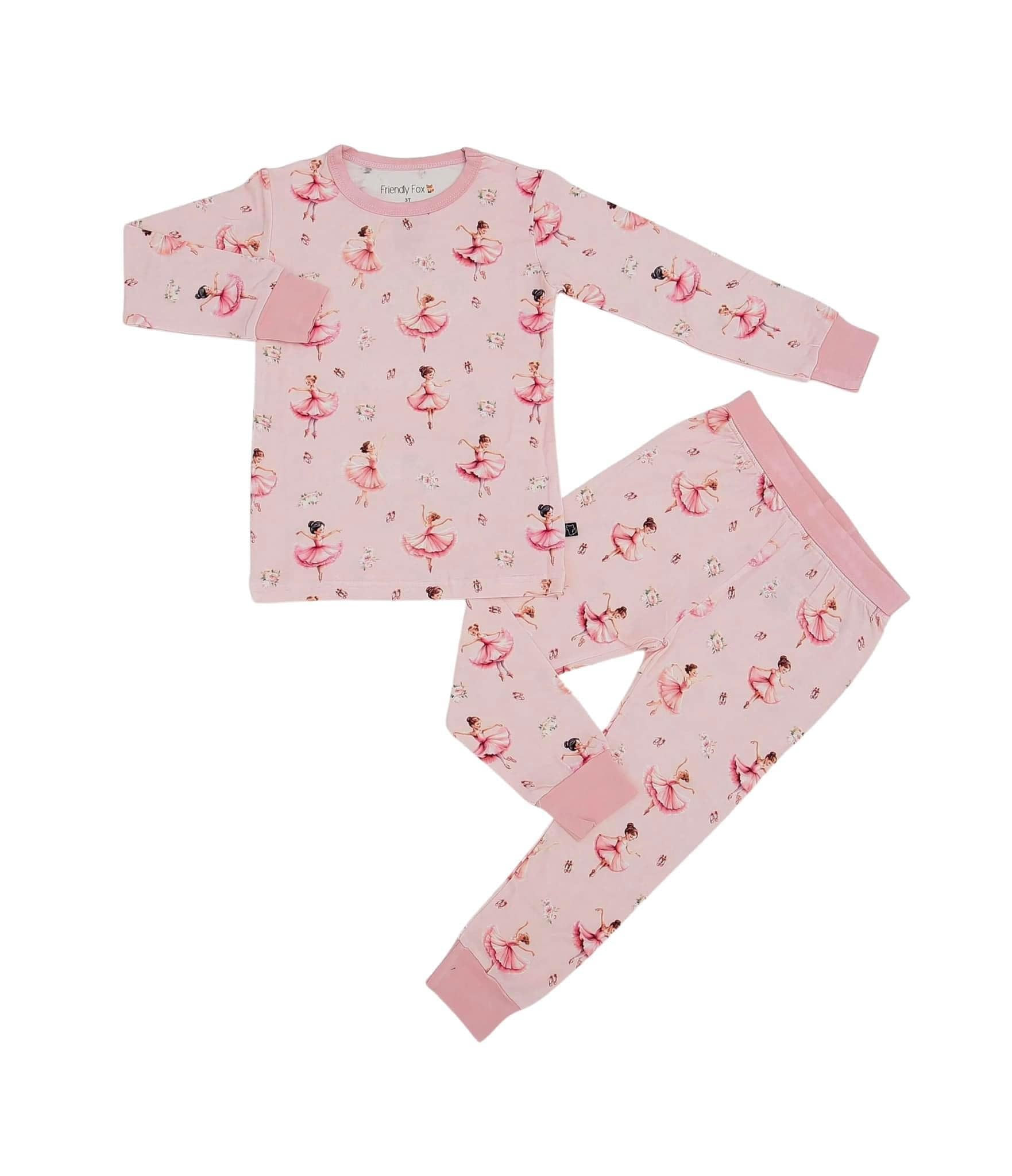 (Custom Design Preorder MOQ 20) Dancing Flowers Pink Print Girls Pajamas Bamboo Clothes Set