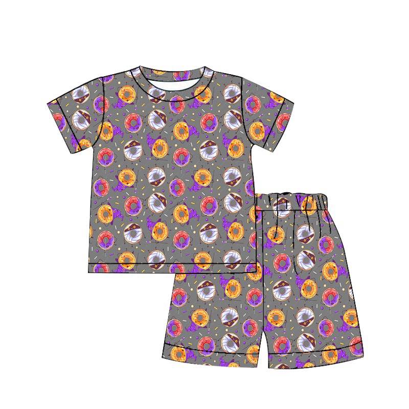 (Custom Design Preorder MOQ 20) Donut Witches Hat Print Girls Halloween Bamboo Pajamas Clothes Set