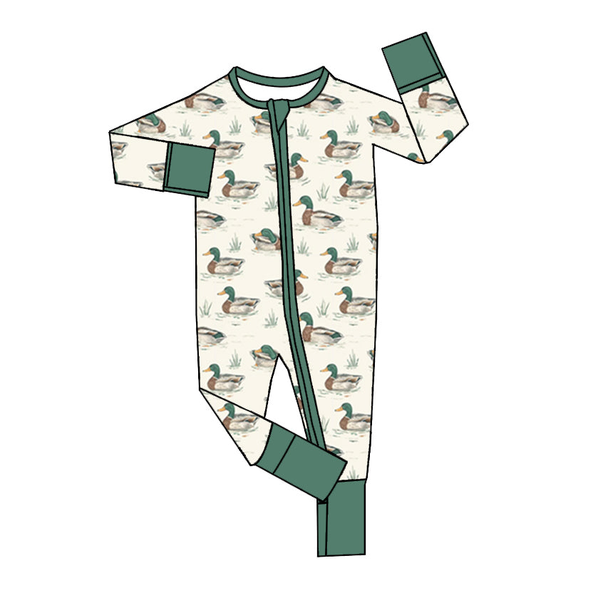 (Custom Design Preorder MOQ 20) Duck Print Baby Boys Fall Bamboo Sleeper Zipper Romper