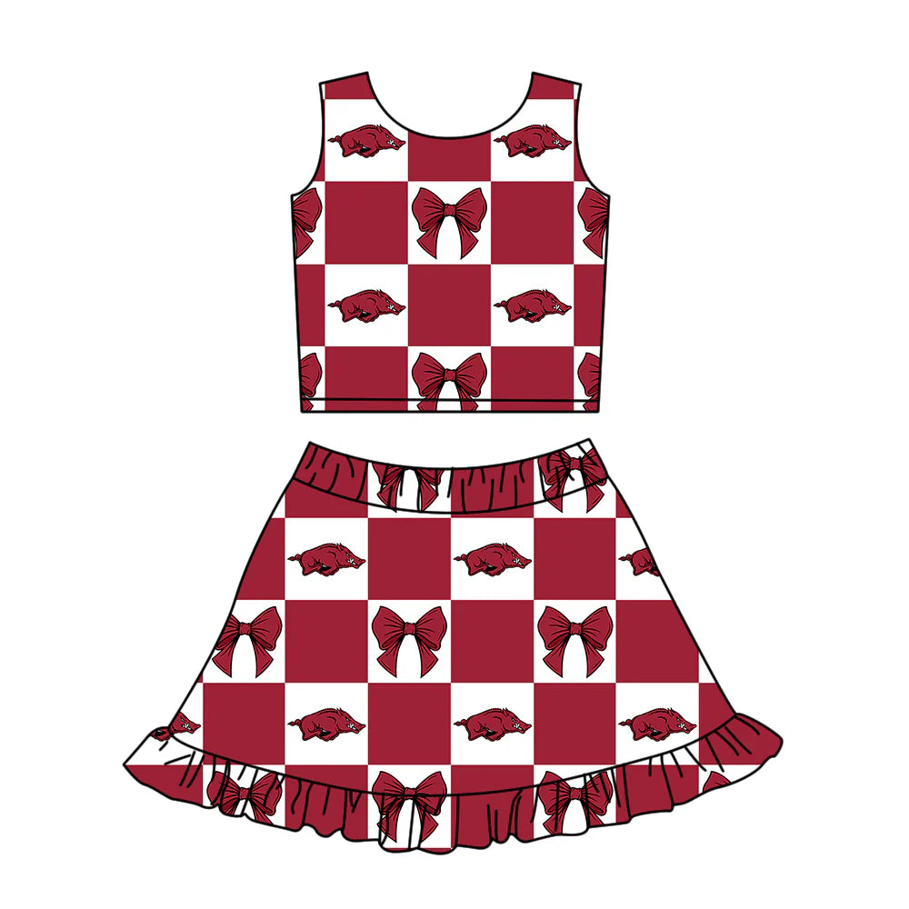(Custom Design Preorder MOQ 5 Each Color) Team's Arkansas Bows Plaid Print Girls Summer Clothes Sisters Matching Wear