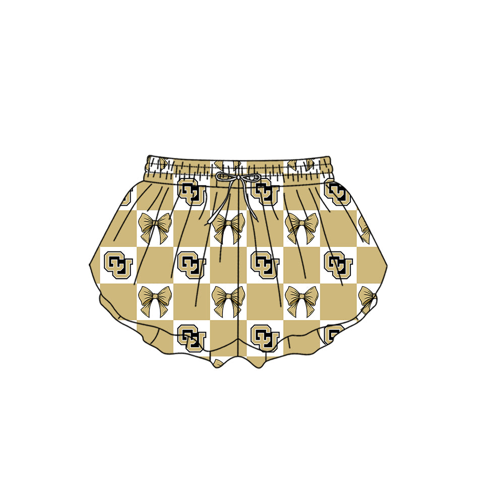(Custom Design Preorder MOQ 5 Each Color) Team's Colorado Bufaloes Bows Plaid Print Girls Summer Clothes Sisters Matching Wear